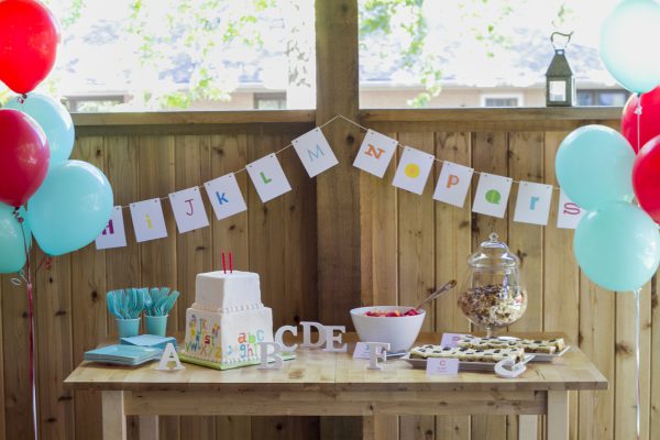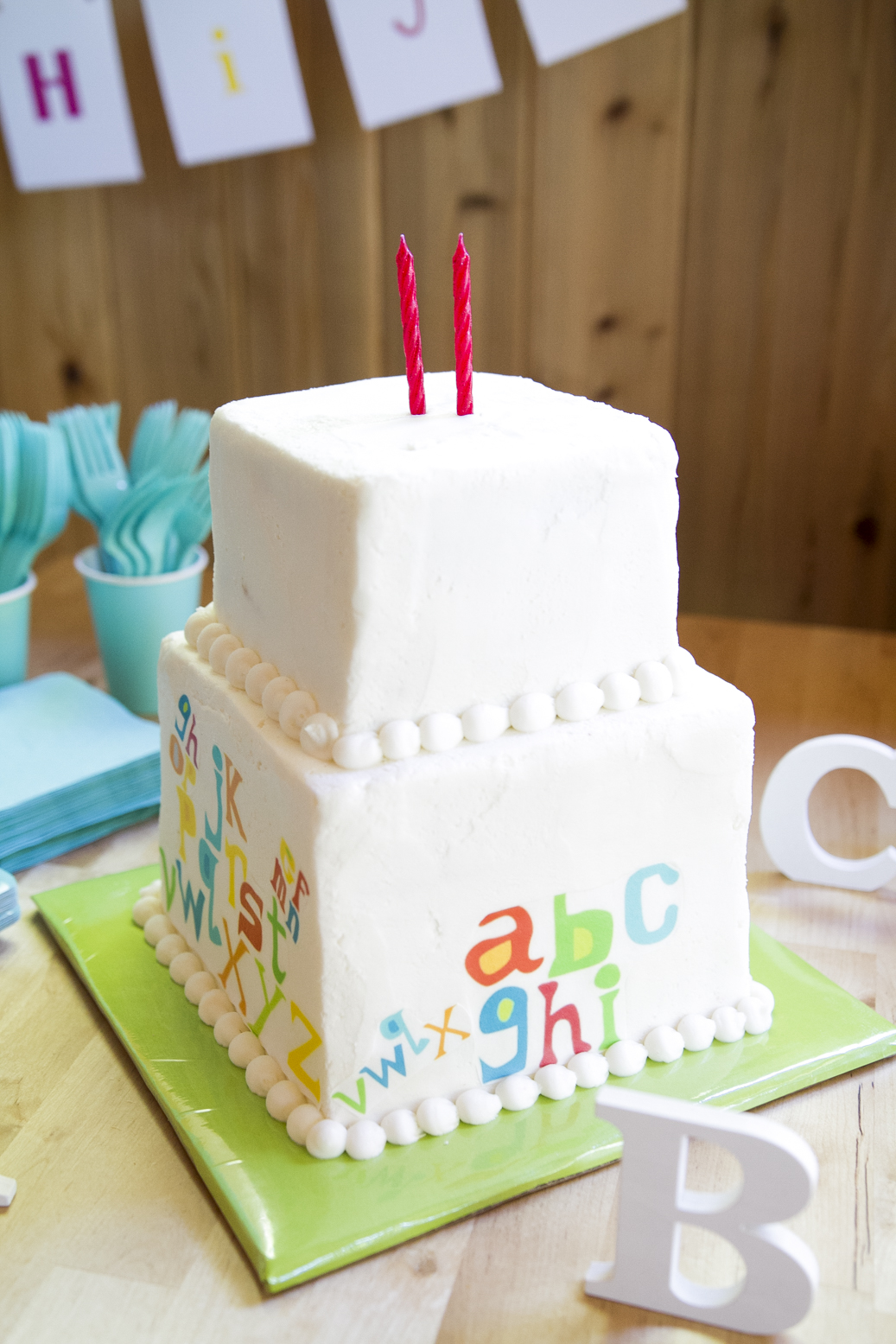 We did an alphabet theme for this one because the child knew his alphabet forwards and backwards way before he turned two. And boy themes are TOUGH…farm animals, cars, jungle, cartoon/tv shows…ugh. Not my style so much but the alphabet theme turned out cute! Here are a few pics from our fun day…