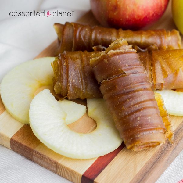 I had the idea to try to adapt my recipe for Dark Cherry Fruit Leather Roll-Ups into something apple-ish and it worked out fabulously! They were easy and delicious! Not to mention so much cheaper than buying them in the store!