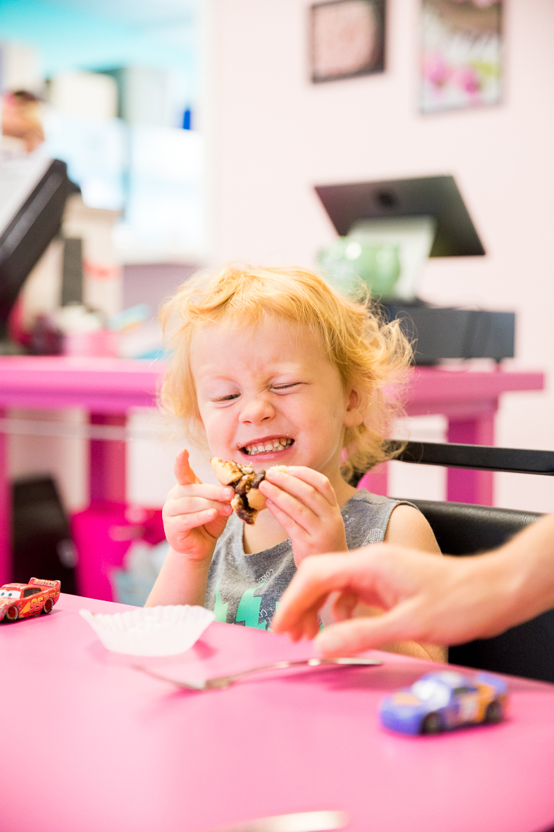 After checking out the bakery case for a few minutes, we ended up ordering two cinnamon rolls, a chocolate cupcake with chocolate frosting, a chocolate cupcake with vanilla frosting and a vanilla cupcake with vanilla frosting. Everything was very tasty but our favorite thing hands down were the cinnamon rolls. They weren’t the yeasty kind you’d expect from a traditional bakery but had a more dense, hearty texture that our family is used to and reminds me of the kind I make. And of course they were filled with a proportionate amount of gooey cinnamon and sugar.