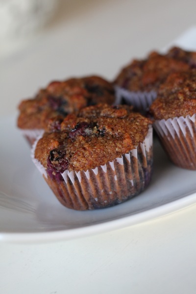 I have to say that this whole new world of baking without flour is really quite exciting to me. I never knew that there were so many options! I wanted to do another gluten-free recipe and also wanted some kind of muffin and was so excited when I stumbled upon this recipe from So Good and Tasty for Cherry Almond Meal Muffins. I only modified it a bit by subbing blueberries for the cherries and throwing in some applesauce and additional spices and extracts. And wow, this muffin is delicious! I absolutely love the taste of texture from the almond meal and can honestly say I think I like it better than flour! Jeremy also loved them which was the real test to me..he could hardly wait for them to cool off before trying one! We ate them warmed up for just a few seconds with a teensy bit of unsalted butter and a drizzle of honey (not needed but oh so good)…mmmmmm!