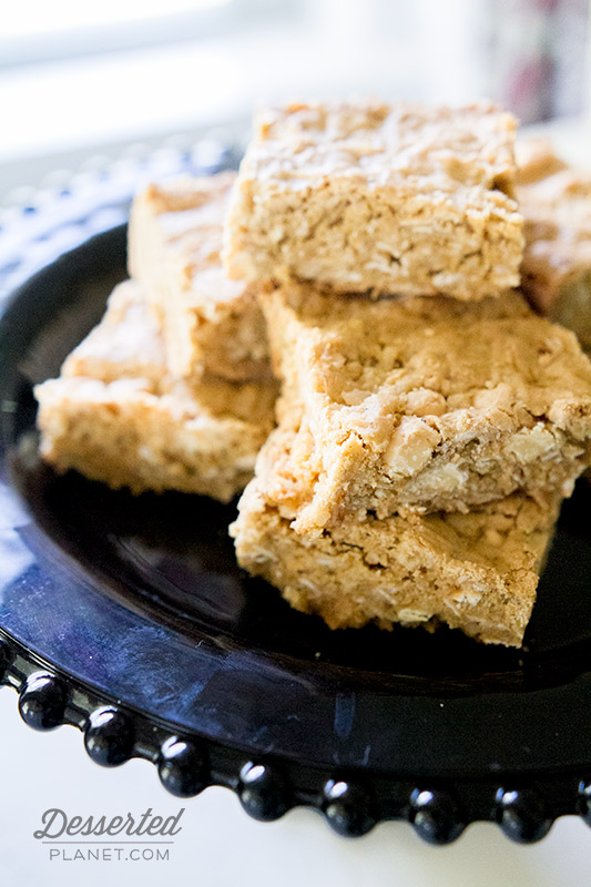Brown Butter Oatmeal Blondies with White Chocolate and Coconut