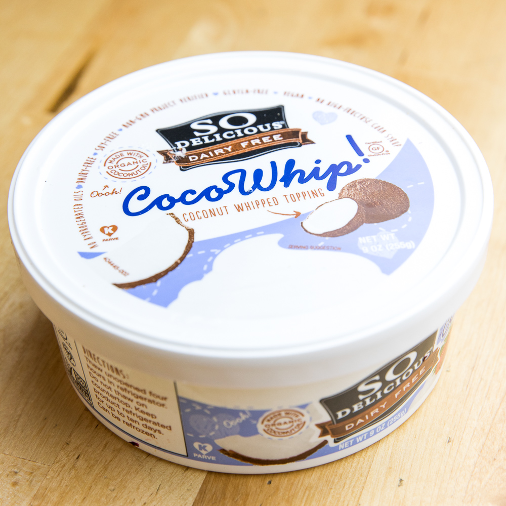 - 2, 9 oz. containers So Delicious Coconut Whipped Cream (I used the lite version)
