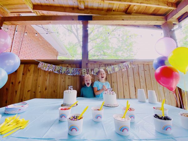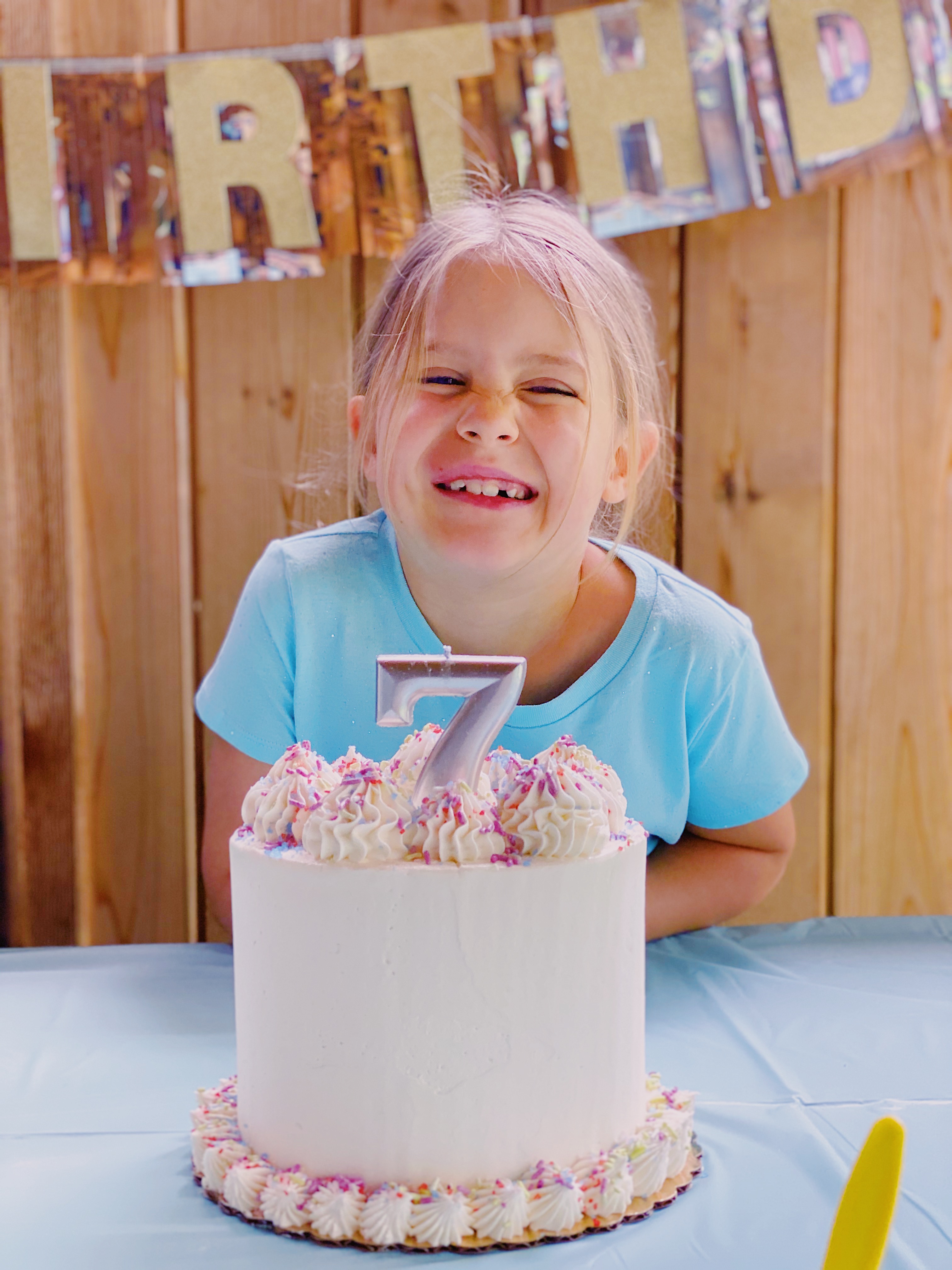 After weeks of being at home and having limited contact with people, it was great to see all of our friends and family together and having a great time! I went pretty simple this year and just did a few balloons and simple decor and had two cakes from one of our favorite local, vegan bakeries Whipped Cream and Other Delights. Her stuff is BEYOND delicious and no one at the party could believe the cakes were vegan and everyone agreed they were even better than “traditional” cake. So good!