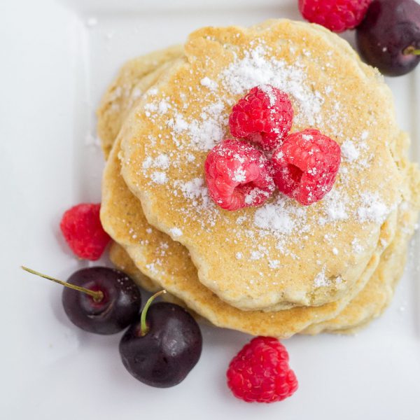 As the title suggests, these are the PERFECT Saturday morning pancakes…minimal effort when you’re just feeling kind of tired and things are slow. They come together quickly and in minutes you’re enjoying fluffy, thick pancakes! Best of all they are dairy, egg and sugar free!