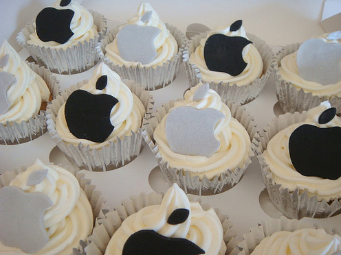 Some sweets inspired by one of our favorite brands. RIP Steve Jobs. Mac Laptop Cake Black and White Apple Logo Cupcakes iPhone Cake Pink iPod…