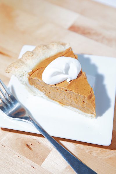 We thought this one tasted just like any traditional pumpkin pie and was down right delicious. It is just a *tad* heavy on the ginger side of things which is totally ok with me because I love ginger, but if you’re not a fan, I’d cut it back to maybe 1/4 teaspoon.