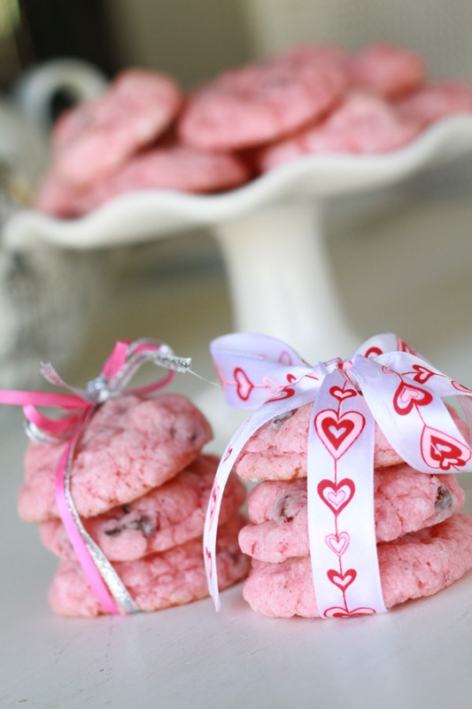 Well now that Christmas and New Year’s is behind us it’s on to the next holiday–Valentine’s Day! There are so many cute things to make and bake for Valentine’s Day it’s really hard to know how to choose or where to start. But, I had seen these cookies on Pinterest and the ingredients alone made me want to make them immediately. I have a thing for cherry-almond anything. And cute, pink baked goods.